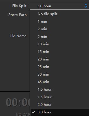 File Split capture: Split the video into clips ranging from 1 minute up to 3 hours in length